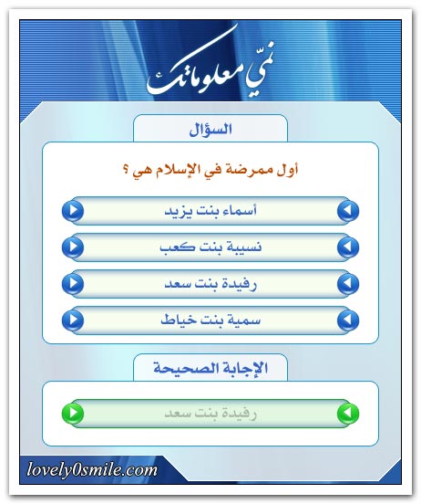 رفيدة الأسلمية رضي الله عنها أول ممرضة في الإسلام رفيدة الأسلمية رضي الله عنها صحابية جليلة هي أول ممرضة في الإسلام كانت تقوم بمداواة م صابي المسلمين وجرحاهم في غزوات الر سول صل ى الله عليه وسل م التي خاضها. من هي أول طبيبة في الإسلام من هي أول ممرضة في الإسلام من أول جراح في العالم من هو أول سفير في الإسلام عمر بن الخطاب قبل الإسلام كيف عالج الرسول الاكتئاب من هو أول من تكلم اللغة العربية. إسمها مشتق من الرفاده والرفاده هي. من أول طبيبة في الإسلام.